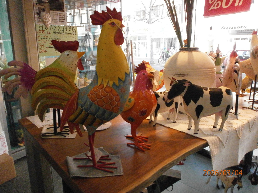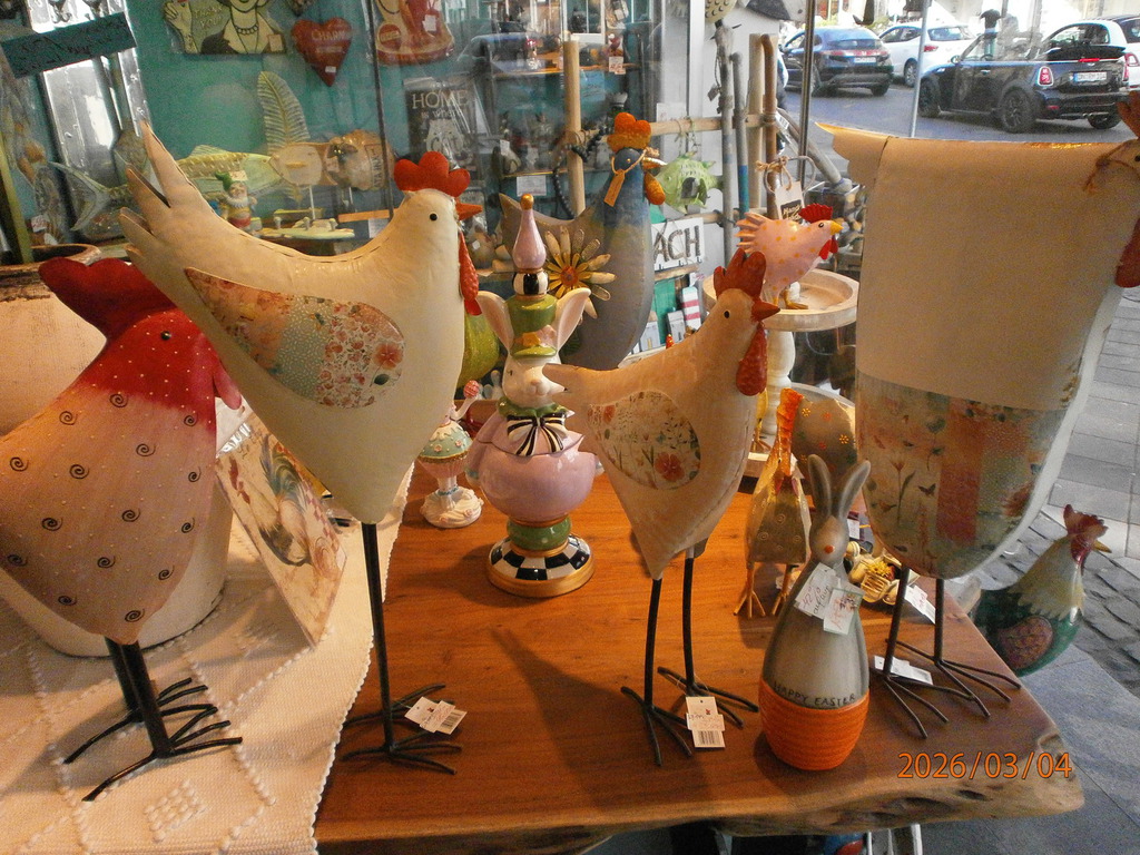Reichhaltig neue Accessoires eingetroffen,bereits rabattiert U. a. viele HÄHNE, HÜHNER,mediterane Artikel und Geissböcke bzw. Zaunhocker.